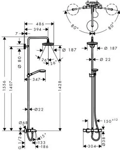 Hansgrohe Croma Select S – Conjunto De Ducha 180 Con Termostato Ecostat S, 2 Chorros, Cromo 27295000
