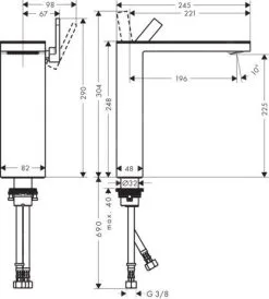 Axor MyEdition – Grifo De 3 Orificios Para Lavabo Con Desagüe Push-Open, Cromo/vidrio Negro 47050600