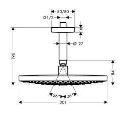 Hansgrohe Raindance New – Rociador De Ducha E 360 Air 1jet Con Brazo De Ducha 390 Mm, Cromo 27376000