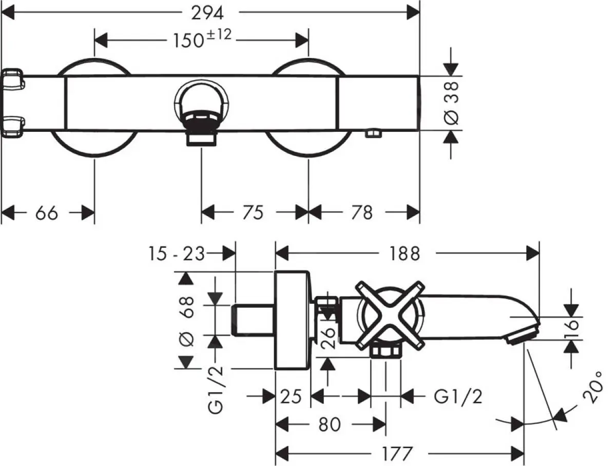 Grifo termostático mural de bañera