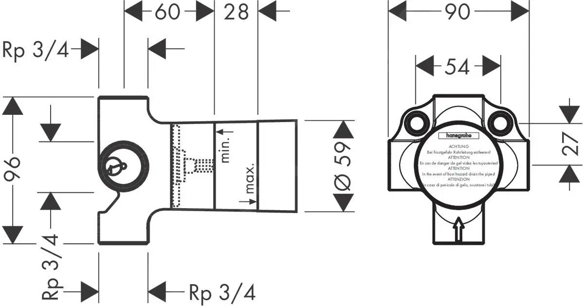 Cuerpo de montaje empotrado para válvula de conmutación de cuatro vías Quattro
