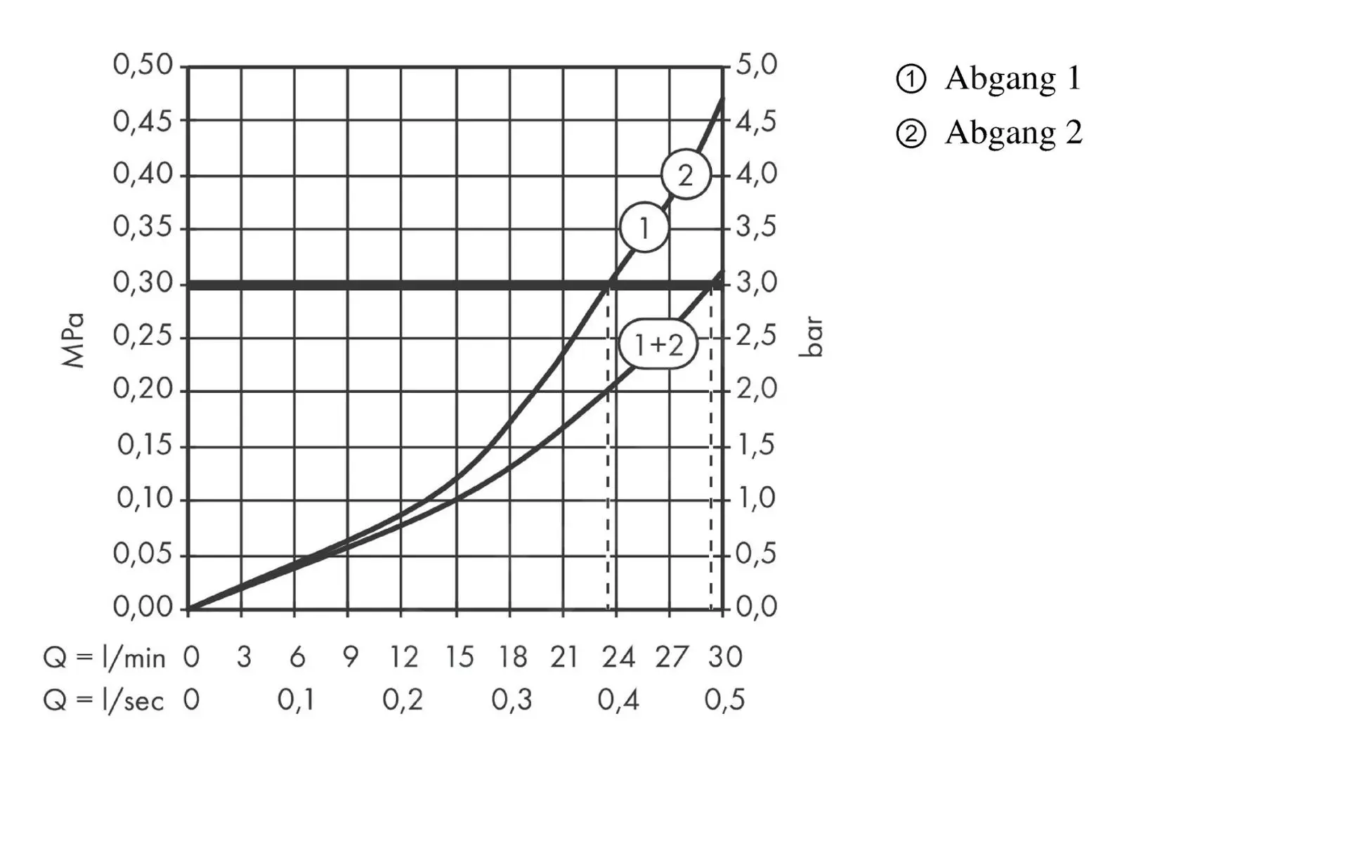 - caudal al usar todos los dispositivos simultáneamente: 30 l/min