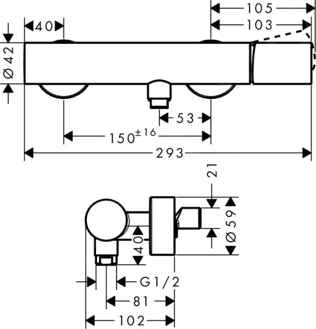 - paso 150 mm ± 16 mm