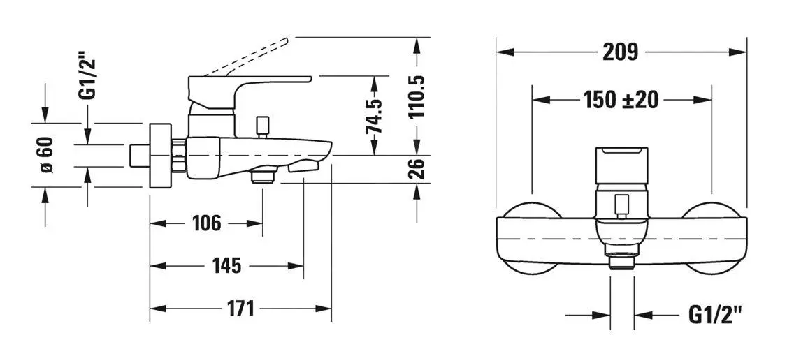Grifo de pared para bañera