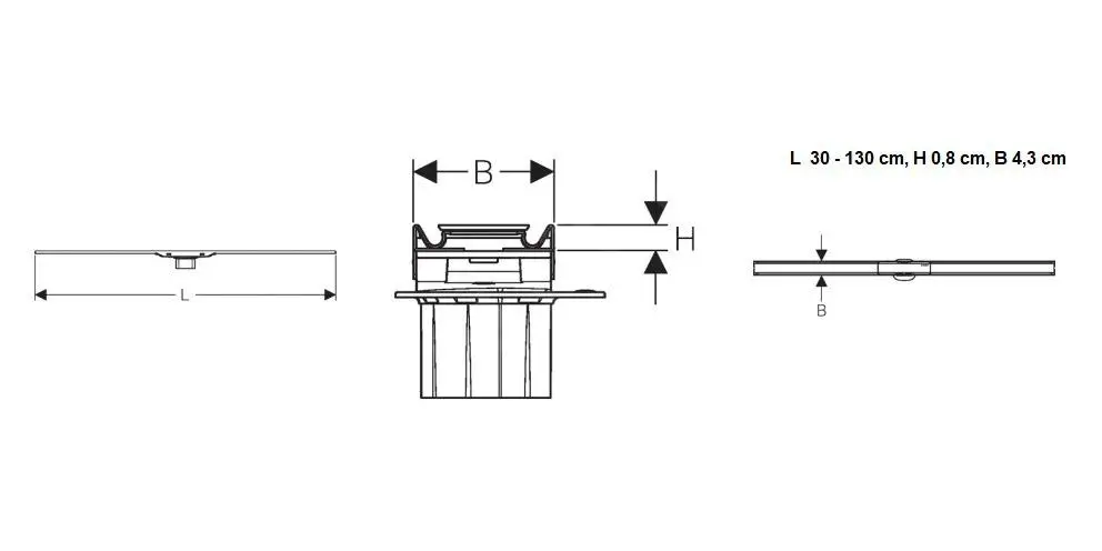 - canal de ducha con posibilidad de acortamiento