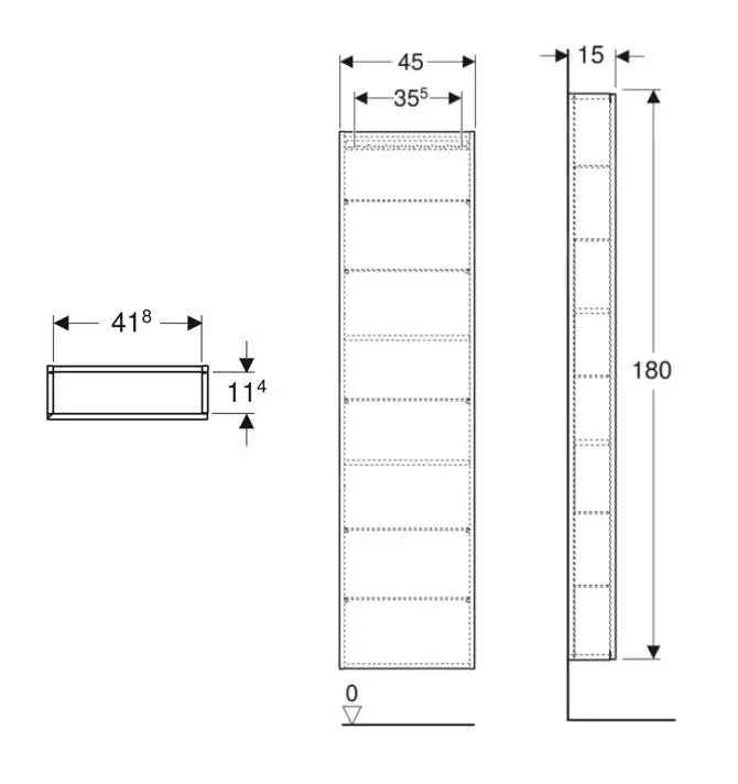 Armario alto iCon con espejo interior, disposición acortada