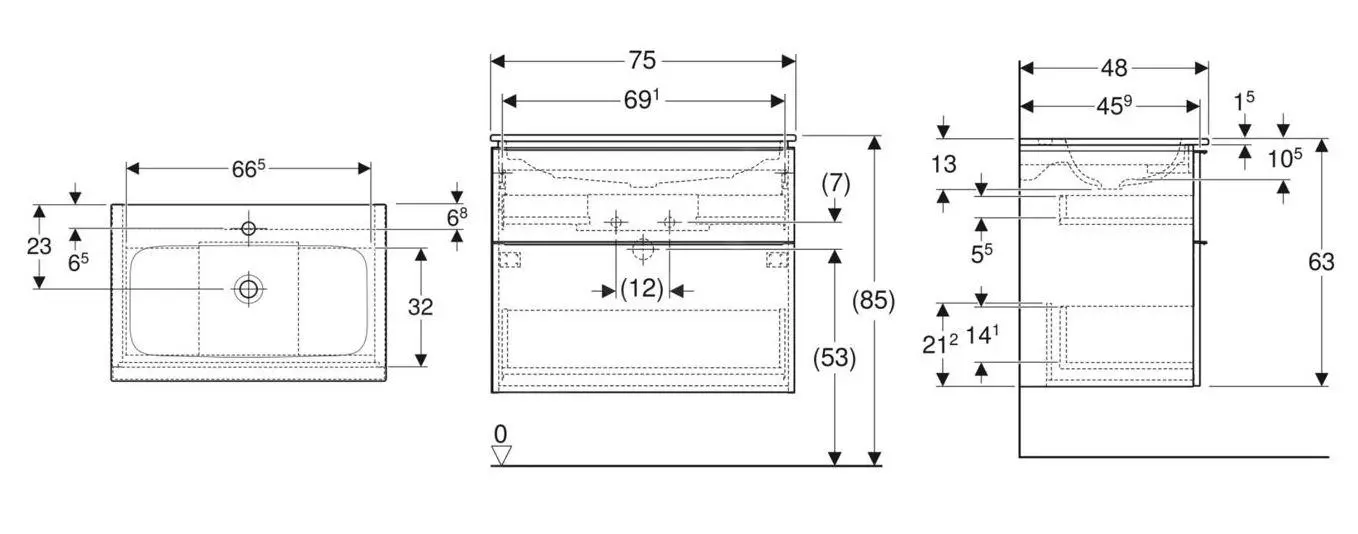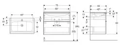 - dimensiones del lavabo 750 x 480 x 130 mm
