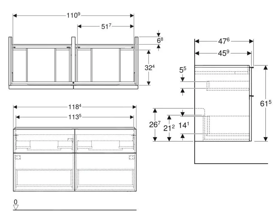 - cajón sin recorte para sifón – es necesario adquirir el kit de rebosadero para ahorrar espacio