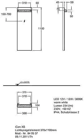 Geberit ICon Xs – Espejo Con Iluminación LED, 370x1100x45 Mm 840537000