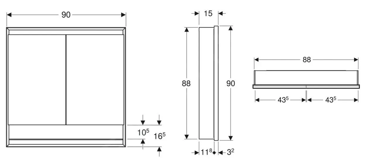 La caja de montaje para el armario con espejo Geberit ONE, altura 90 cm no está incluida.