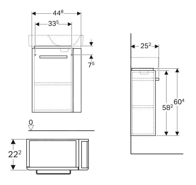 Mueble bajo lavamanos, puerta con bisagras a la izquierda
