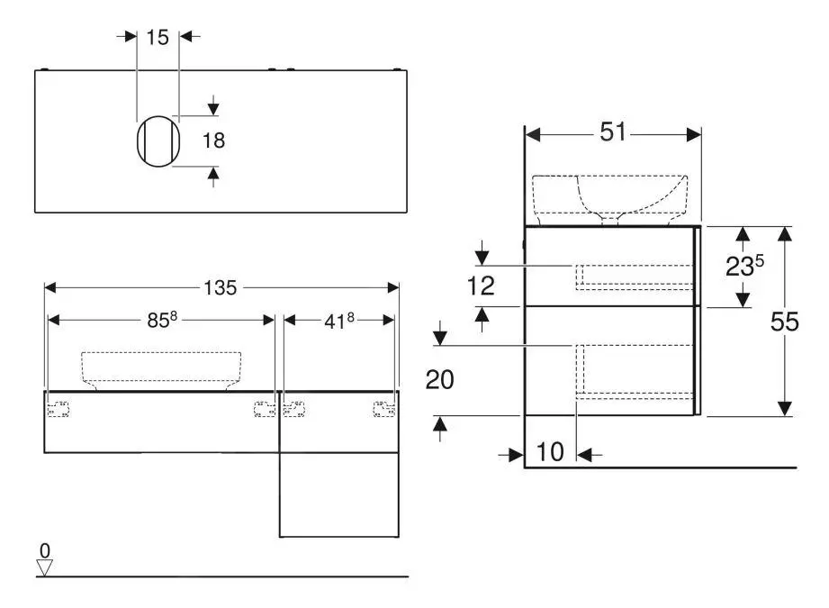 - sifón incluido con tubo de inmersión, ahorro de espacio (diámetro 32 mm)
