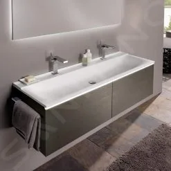 Armario suspendido bajo el lavabo de compuesto mineral Varicor con dos cajones y iluminación LED