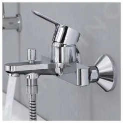 El grifo de bañera GROHE Edge cumple con las altas exigencias de fiabilidad, seguridad y calidad. Está diseñado para el montaje en la pared. El grifo de bañera incluye rosetas metálicas en la pared que ocultan con elegancia la parte técnica del grifo. Apreciarás el control suave y preciso de la palanca que proporciona el cartucho de cerámica con tecnología GROHE Longlife. Gracias a él, podrás ajustar la temperatura y el caudal de agua cómodamente. El grifo de bañera también está equipado con un conmutador automático de bañera/ducha y un limitador de caudal ajustable. El acabado de alto brillo, la resistencia mecánica y el fácil mantenimiento están asegurados por la tecnología GROHE StarLight. Gracias a su diseño, este grifo de bañera se adapta a todos los estilos de baño.