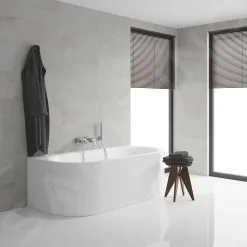 La precisión milimétrica de la forma cuadrada del grifo monomando de bañera Grohe Eurocube se refleja en su función. Puedes ajustar cómodamente la temperatura y el volumen del agua corriente cada vez que se bañe o se duche, exactamente a tu gusto gracias a la tecnología SilkMove. El grifo de bañera te permite cambiar entre caño de la bañera y de ducha, y una teleducha con una manguera de 1500 mm se incluye en el paquete.