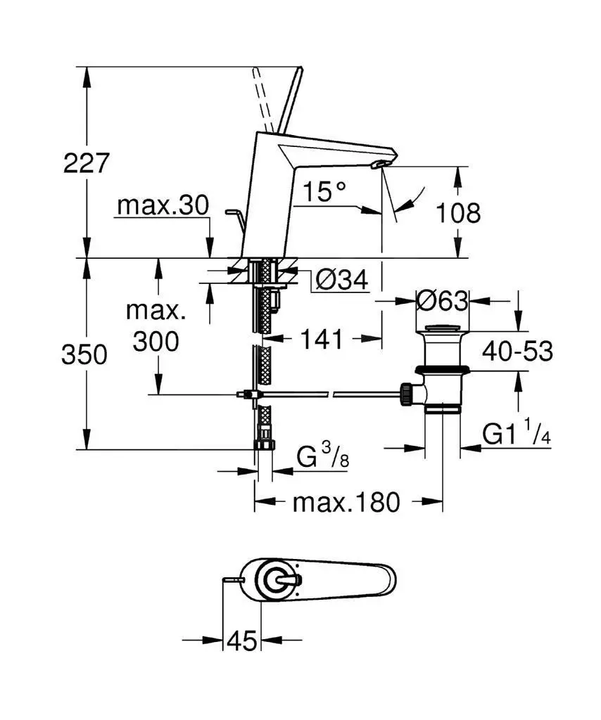 Este grifo de lavabo de la serie GROHE Eurodisc Joystick presenta un diseño limpio y elegante liderado por la brillante y duradera superficie cromada GROHE StarLight. Su impresionante diseño se complementa con un rendimiento funcional sin precedentes. El caño medio-alto de este grifo es ideal para llenar recipientes altos y facilita el lavado del cabello directamente en el lavabo. La tecnología de ahorro GROHE EcoJoy reduce el consumo máximo posible de agua a 5,7 litros por minuto, lo que tiene un efecto positivo en el medio ambiente y en tu bolsillo. El cartucho GROHE SilkMove permite una regulación suave y precisa del chorro y la temperatura del agua corriente. El sistema GROHE QuickFix Plus asegura un montaje claro y rápido de este grifo. La acumulación de cal ya no será un problema gracias a la tecnología SpeedClean.