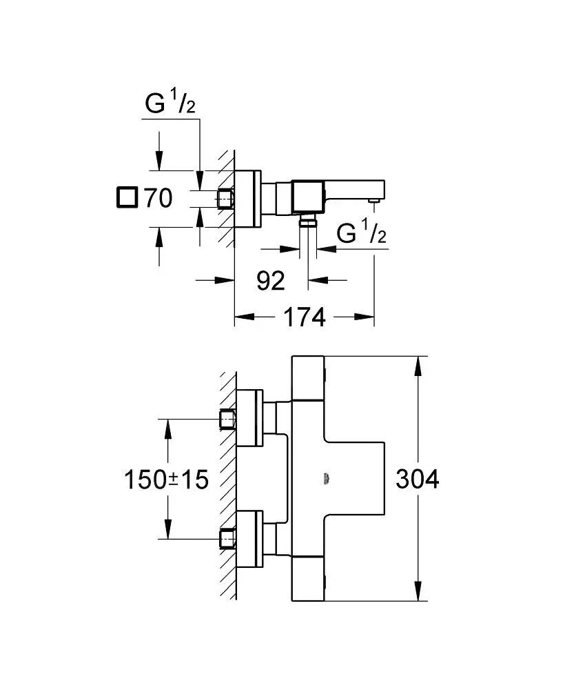 - GROHE AquaDimmer Eco con función asociada: GROHE EcoButton integrado (botón de ahorro de energía para duchas de bajo consumo