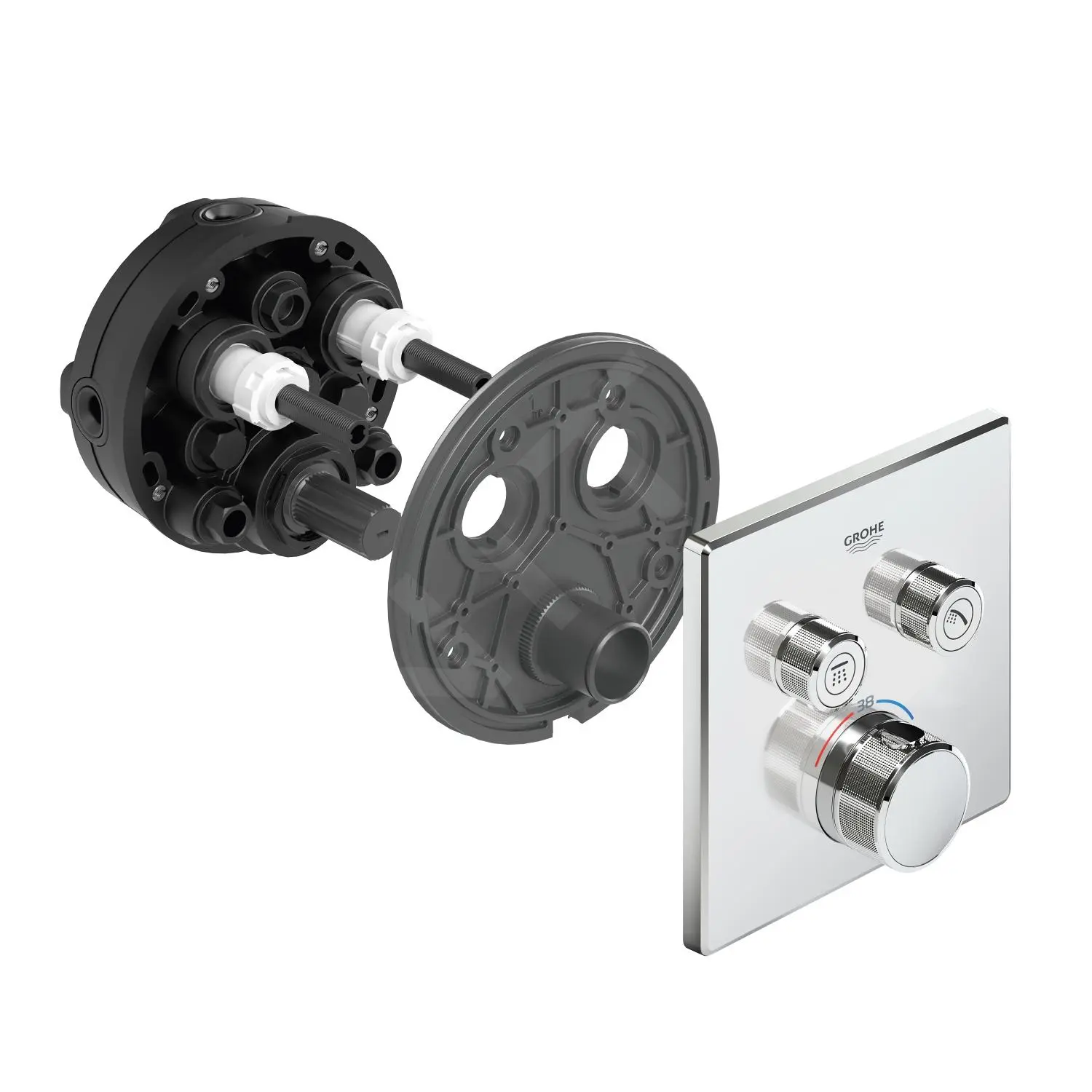 Los grifos termostáticos son una gran elección para todos aquellos que valoran la seguridad, la comodidad y la fiabilidad. La grifería termostática de bañera Grohe Grohtherm SmartControl impresiona por su diseño cuadrado y sus accesorios. Contiene una serie de tecnologías modernas que hacen que el manejo del agua sea agradablemente fácil y, al mismo tiempo, apoyan a la vida útil de todo el sistema. El corazón del grifo es un cartucho compacto con termoelemento, que te permite ajustar suavemente la temperatura y el caudal de agua deseados. El aspecto brillante de las superficies cromadas y su durabilidad mecánica están garantizados por la tecnología Grohe StarLight.