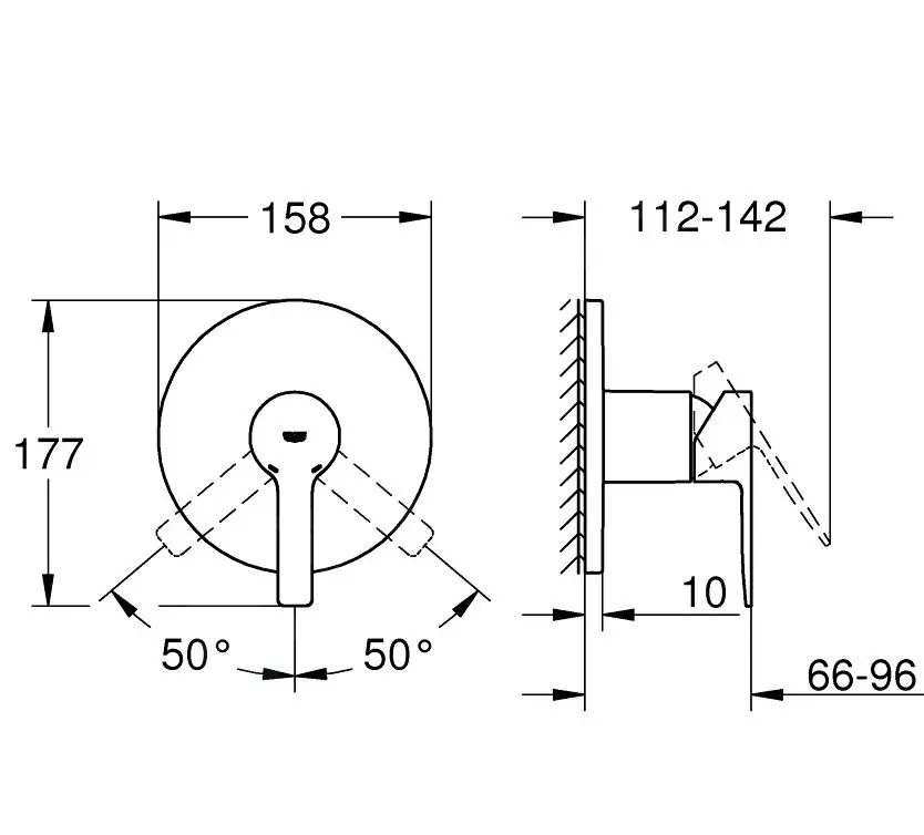 Grifo monomando empotrado de ducha sin cuerpo de montaje