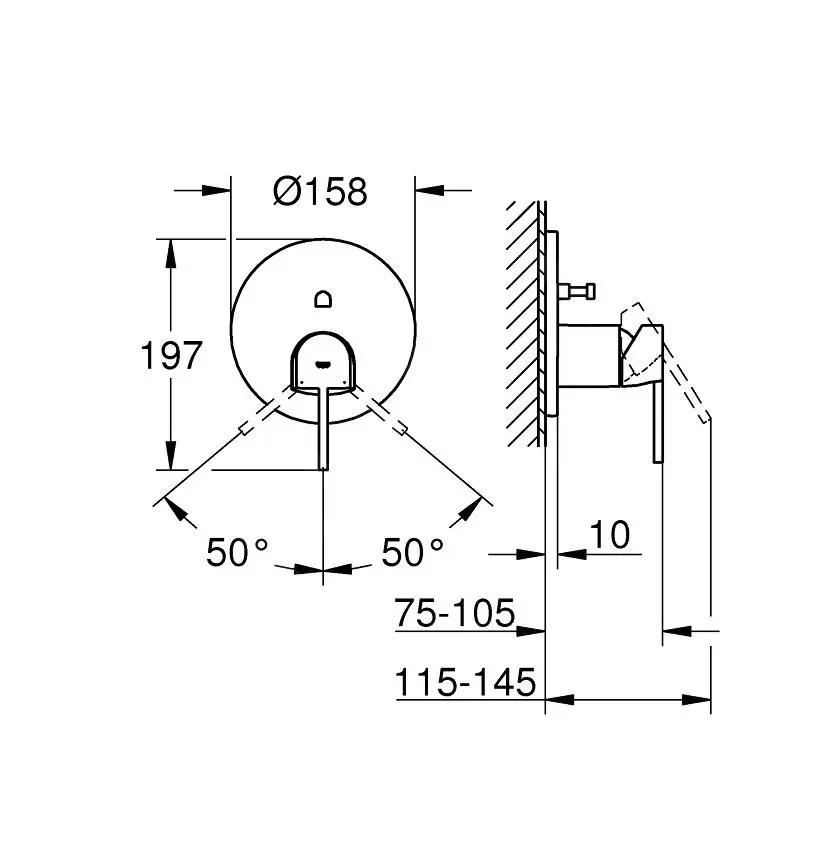 Grifo monomando empotrado de ducha, sin cuerpo de montaje