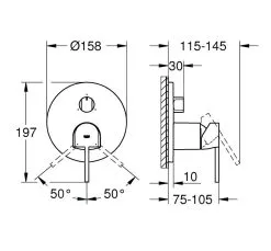 Grifo monomando empotrado con inversor de 3 vías, sin cuerpo de montaje