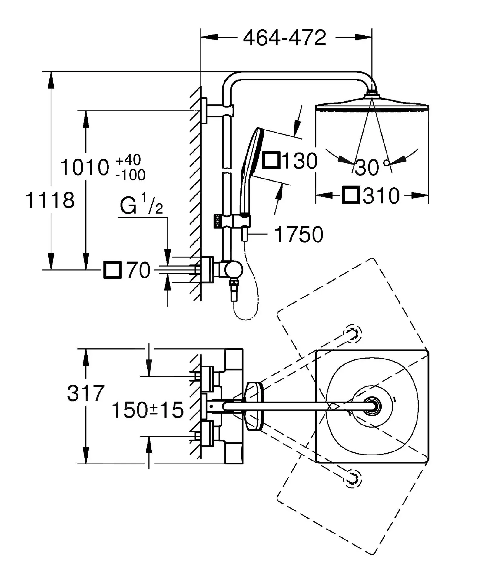 - dimensión de la alcachofa de ducha 310 x 310 mm