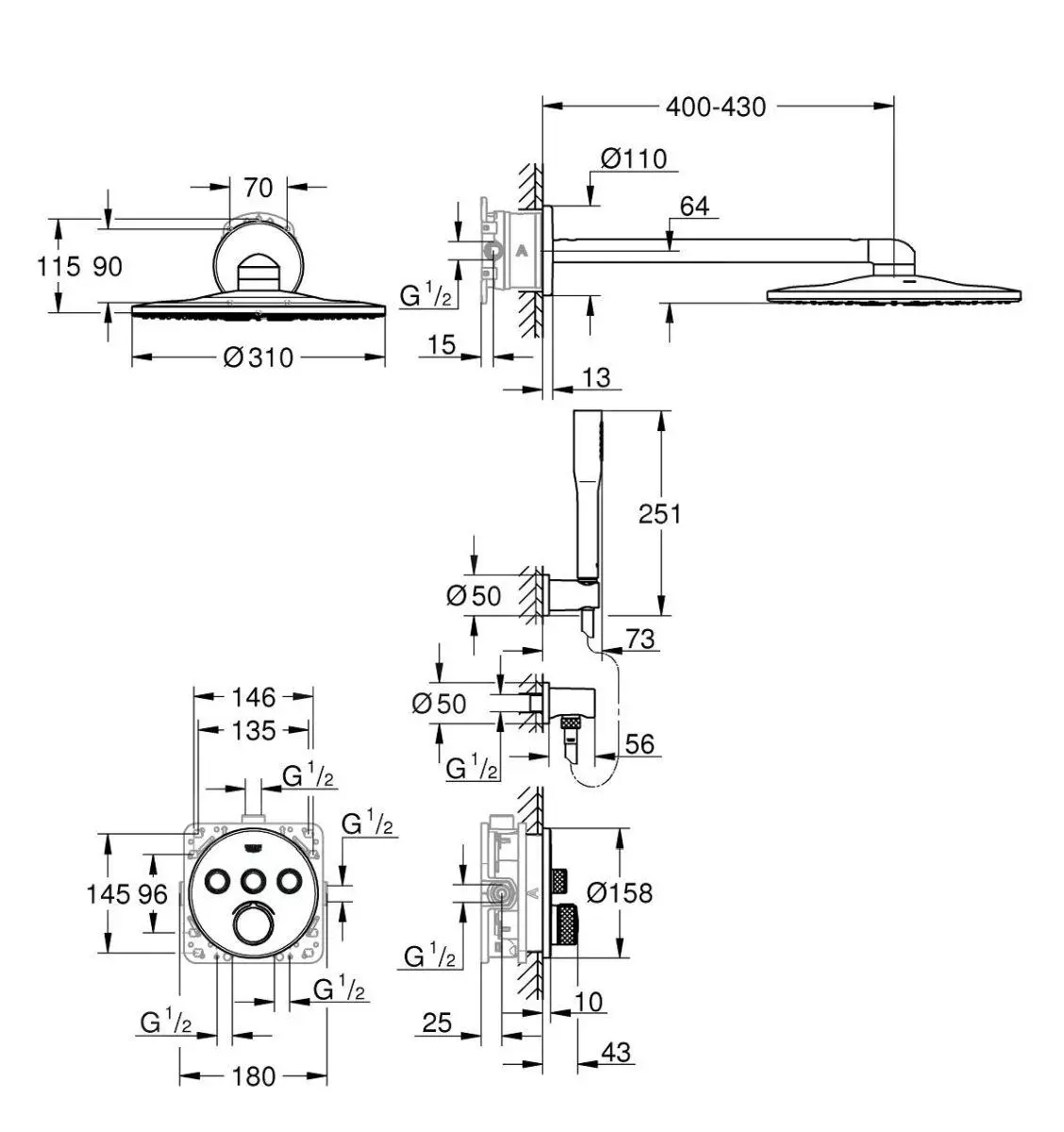 - diámetro de la ducha 310 mm