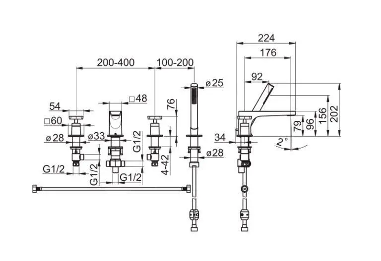 Grifo de bañera de cuatro orificios DN20