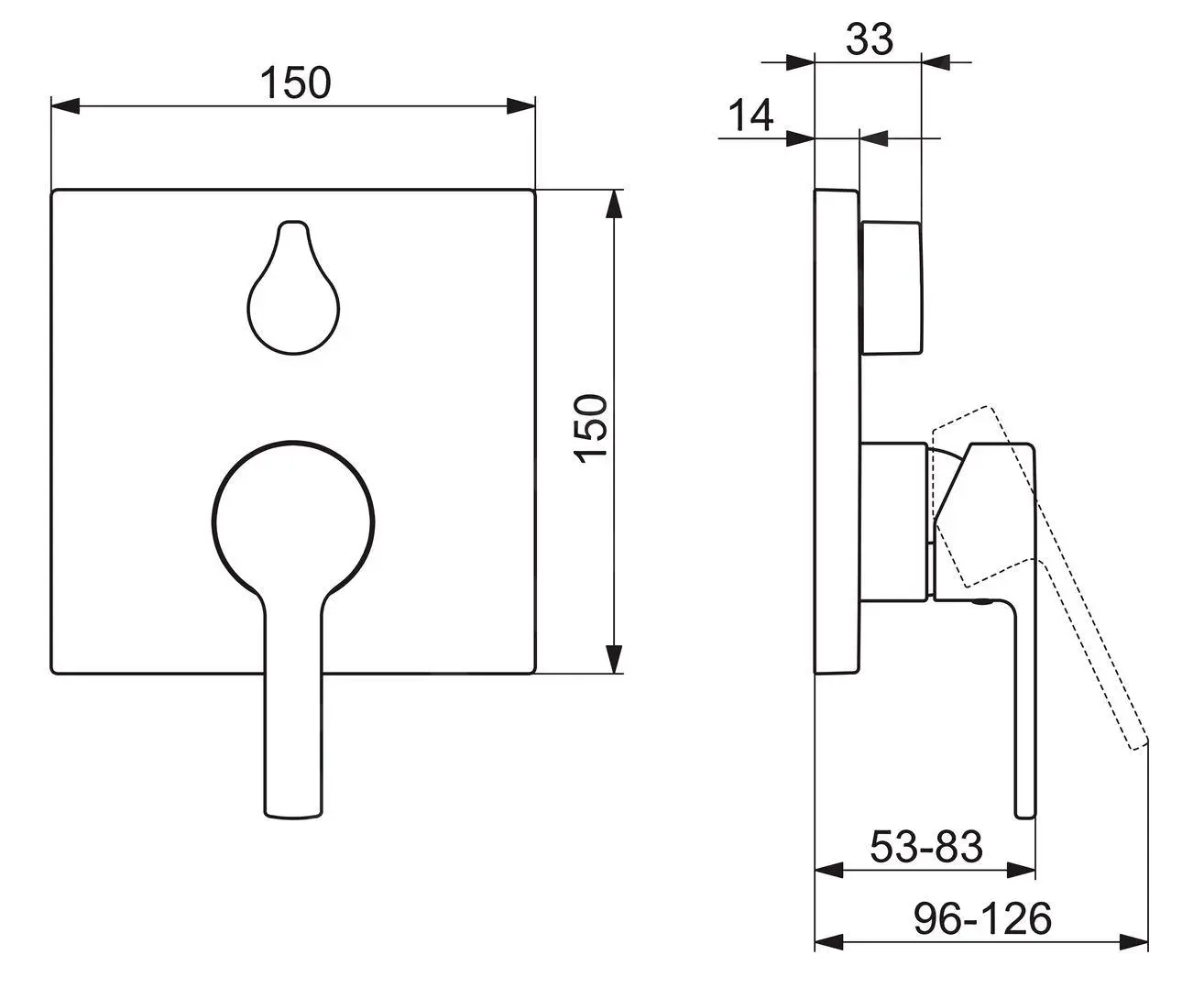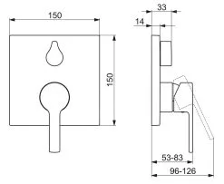 - manguito y roseta de cubierta sin tornillos para montaje de pared, dimensiones: 150 x 150 mm