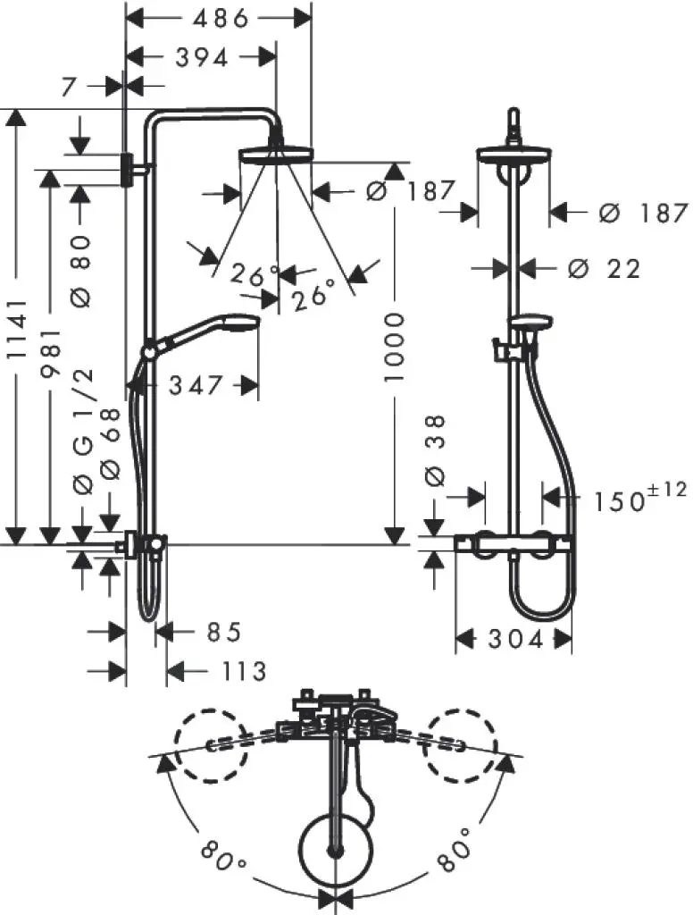 Conjunto de ducha Croma Select S Showerpipe, EcoSmart 9 l/min, 2jet