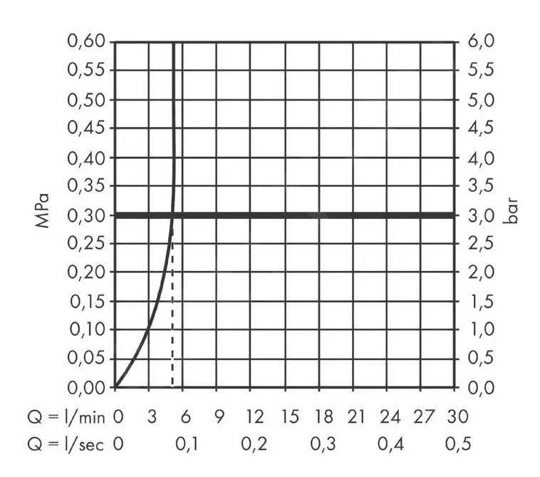 - max. caudal: 5 l/min (presión a 3 bares)
