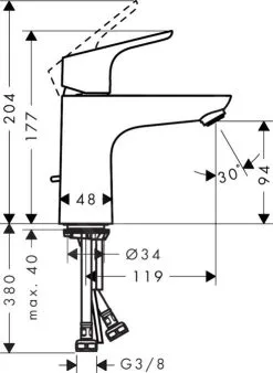 Los grifos con esta denominación ofrecen una mayor libertad de movimiento en el fregadero o en el lavabo. Este grifo ofrece una ComfortZone 100. Esto garantiza una comodidad suficiente incluso en condiciones de espacio reducido, por ejemplo al lavarse las manos en lavabos pequeños o en el baño de huéspedes.