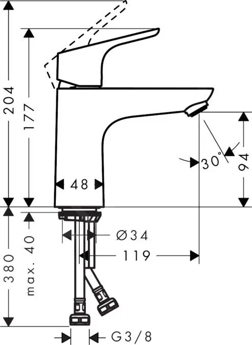 Los grifos con esta denominación ofrecen una mayor libertad de movimiento en el fregadero o el lavabo. Este grifo ofrece una ComfortZone 100. Esto garantiza una comodidad suficiente incluso en condiciones de espacio reducido, por ejemplo al lavarse las manos en lavabos pequeños.