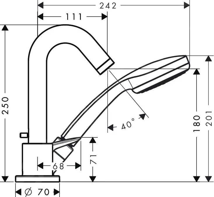 - incluye: Grifo monomando de 3 orificios para borde de bañera, teleducha, manguera de ducha, soporte de ducha