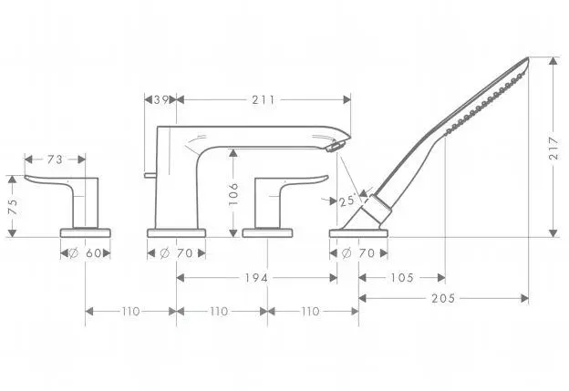 Hansgrohe Metris New – Grifo De 4 Orificios Para Borde De Bañera, Cromo 31442000