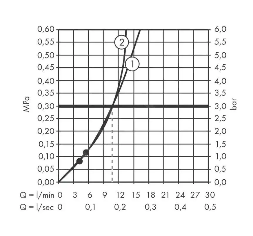 - caudal máximo a 0,3 MPa: 10,9 l/min