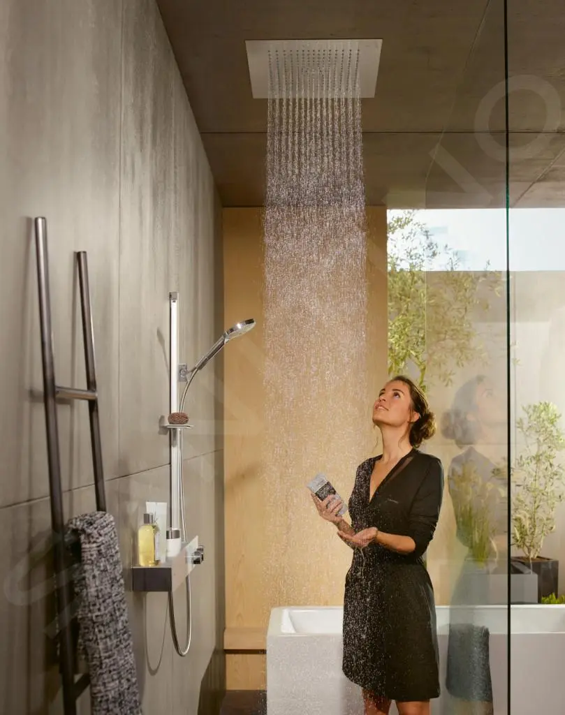 Hay veces que el tamaño importa. Las dimensiones de 400×400 mm del rociador de ducha ofrecen la oportunidad de conseguir la máxima relajación y estimulación. Gracias a estas dimensiones, el chorro de agua de RainAir tiene la posibilidad de envolver todo tu cuerpo, y puedes dejar pasar todo lo que necesitas soltar. Los chorros de agua estimularán no sólo el cuerpo sino también la mente. Además, gracias a la tecnología de ducha AirPower, tu experiencia será realmente intensa. El aire se introduce en las gotas de agua a través de la tecnología moderna, lo que hace que las gotas estén más llenas, sean más suaves y más eficaces. No salpican cuando tocan la piel, sino que arrastran suavemente las impurezas y la tensión. El resultado es una agradable lluvia espumosa. Una experiencia de ducha de calidad también es posible gracias a la tecnología XXL Performance, que se centra en la distribución inteligente del agua. De este modo, el agua se reparte en una zona más amplia. También apreciarás la práctica tecnología QuickClean, que facilita el mantenimiento y triunfa sobre la cal. El rociador de ducha está diseñado para su instalación empotrada en el techo, y el cuerpo de montaje debe pedirse por separado.