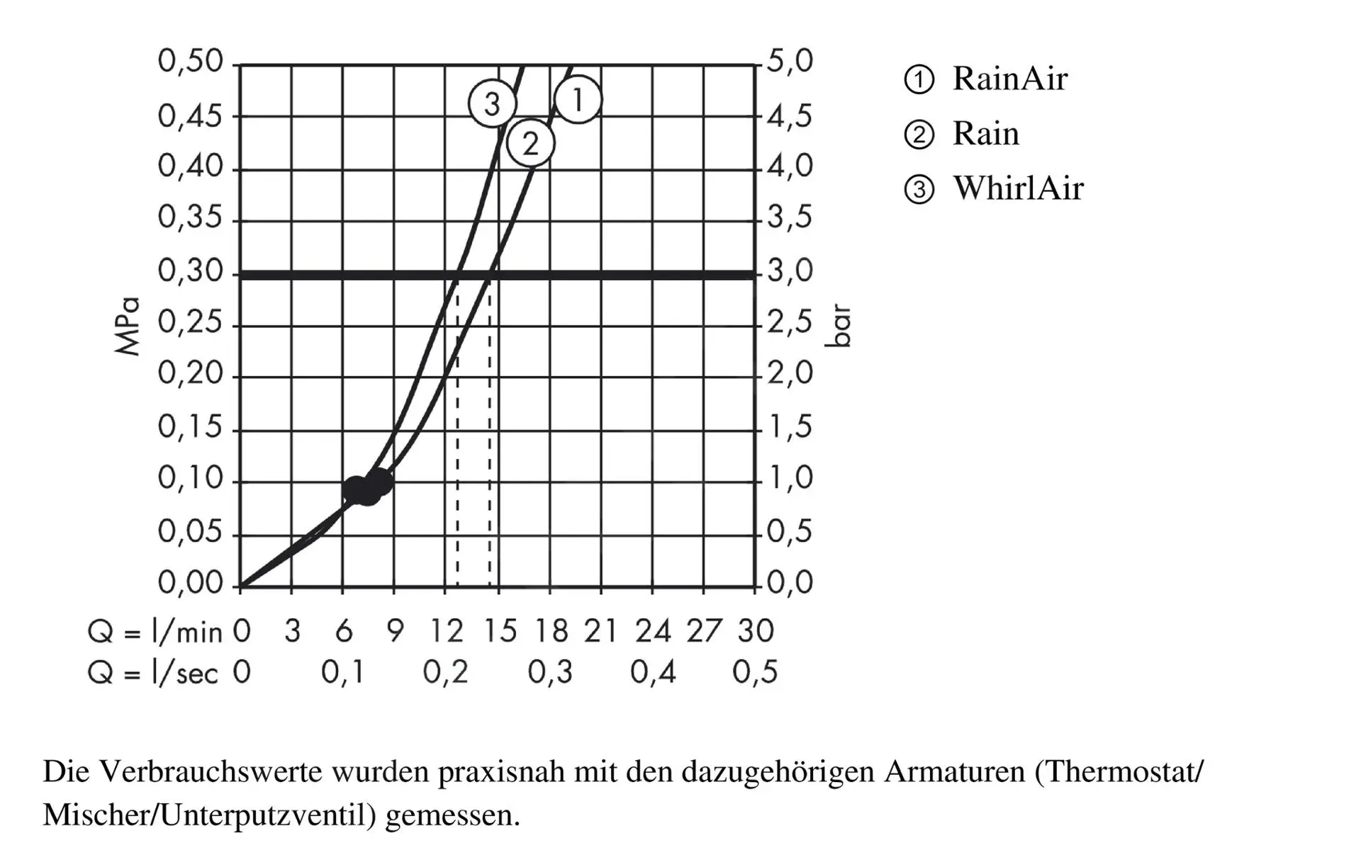 - caudal a 0,3 MPa: 15 l/min