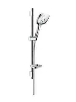 El conjunto de ducha Hansgrohe Raindance Select E 150 3jet Unica`S Puro 0,65 m ofrece un confort de ducha de tamaño XXL. De la alcachofa de ducha de 150 mm de diámetro salen tres tipos de chorro de agua. Puedes cambiar de uno a otro con sólo pulsar un botón
