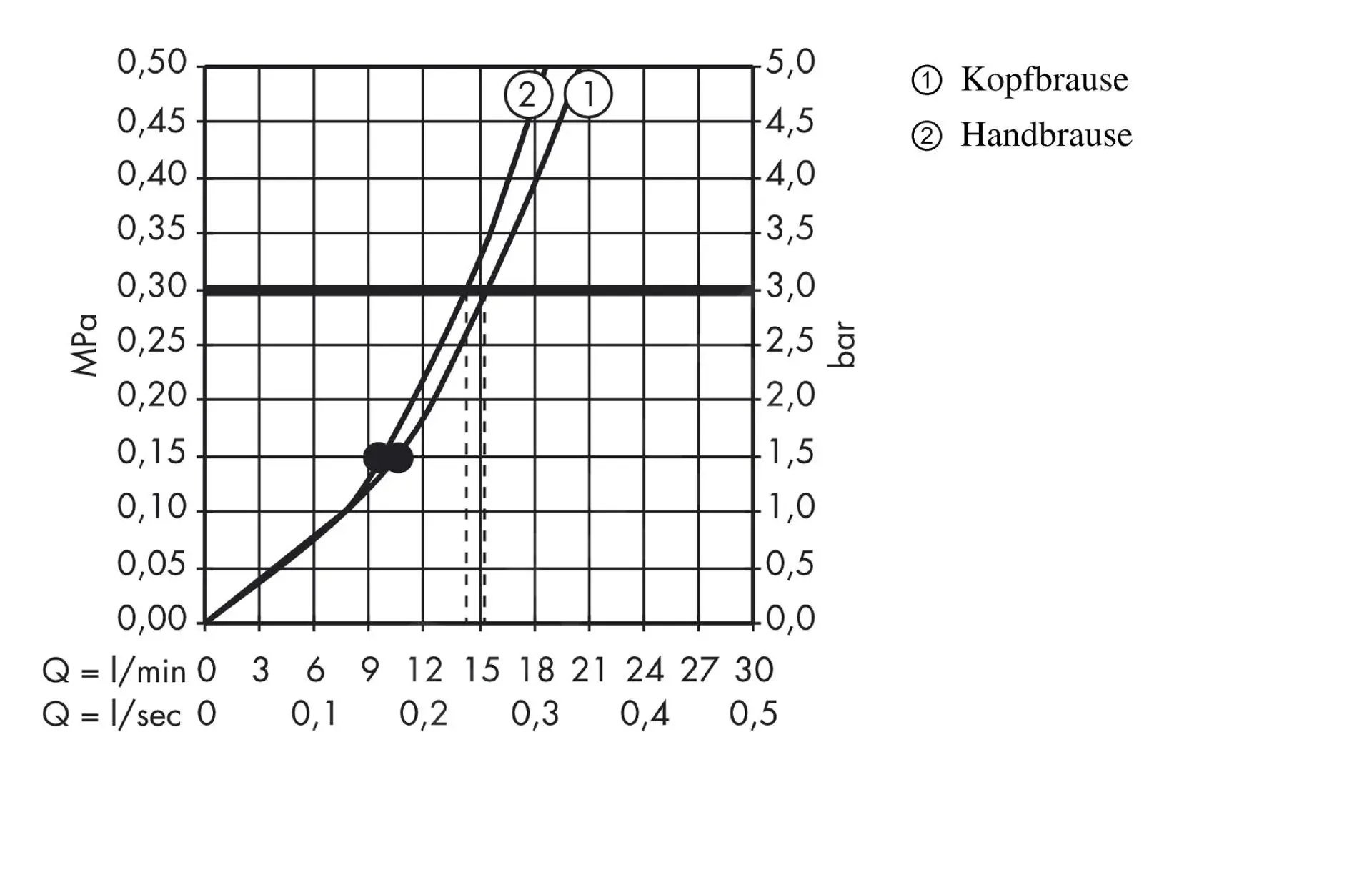 - caudal máximo (a 0,3 MPa): 15 l/min