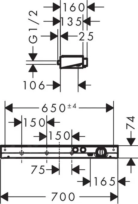 - posibilidad de controlar la ducha externa o el caño de la ducha a través de la salida empotrada G ½