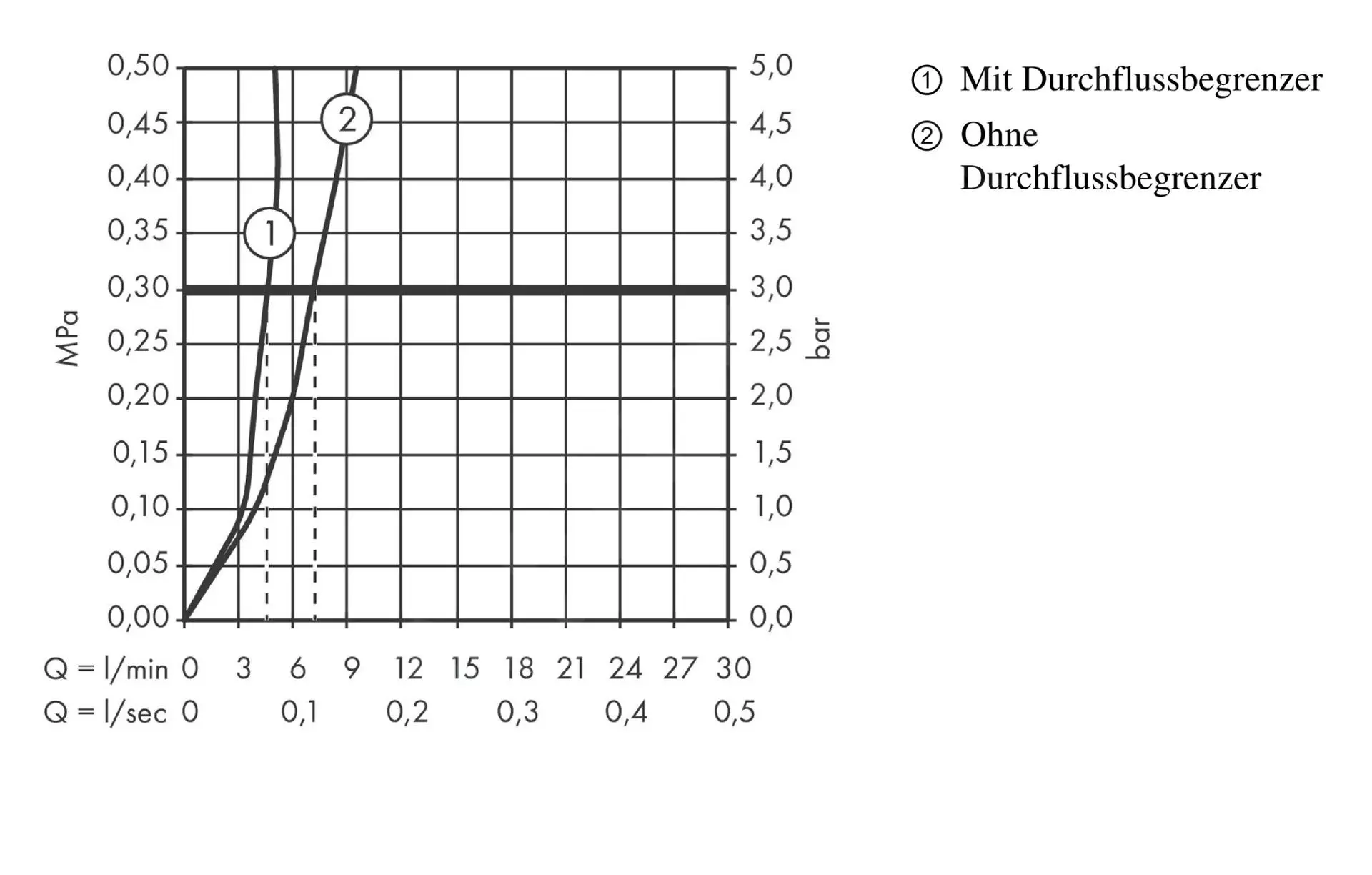 - caudal a 0,3 MPa: 5 l/min