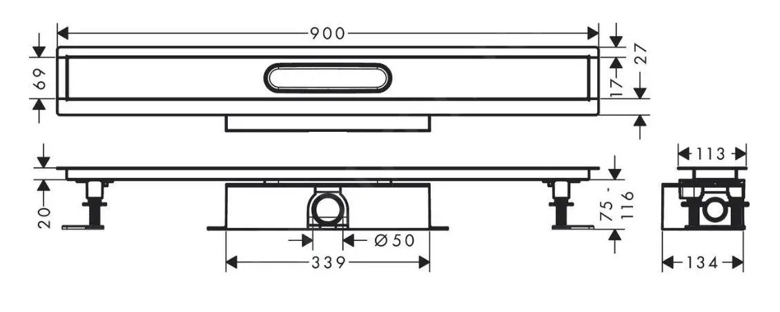 Kit completo de canaleta de ducha lineal uBox universal 900, para instalación estándar