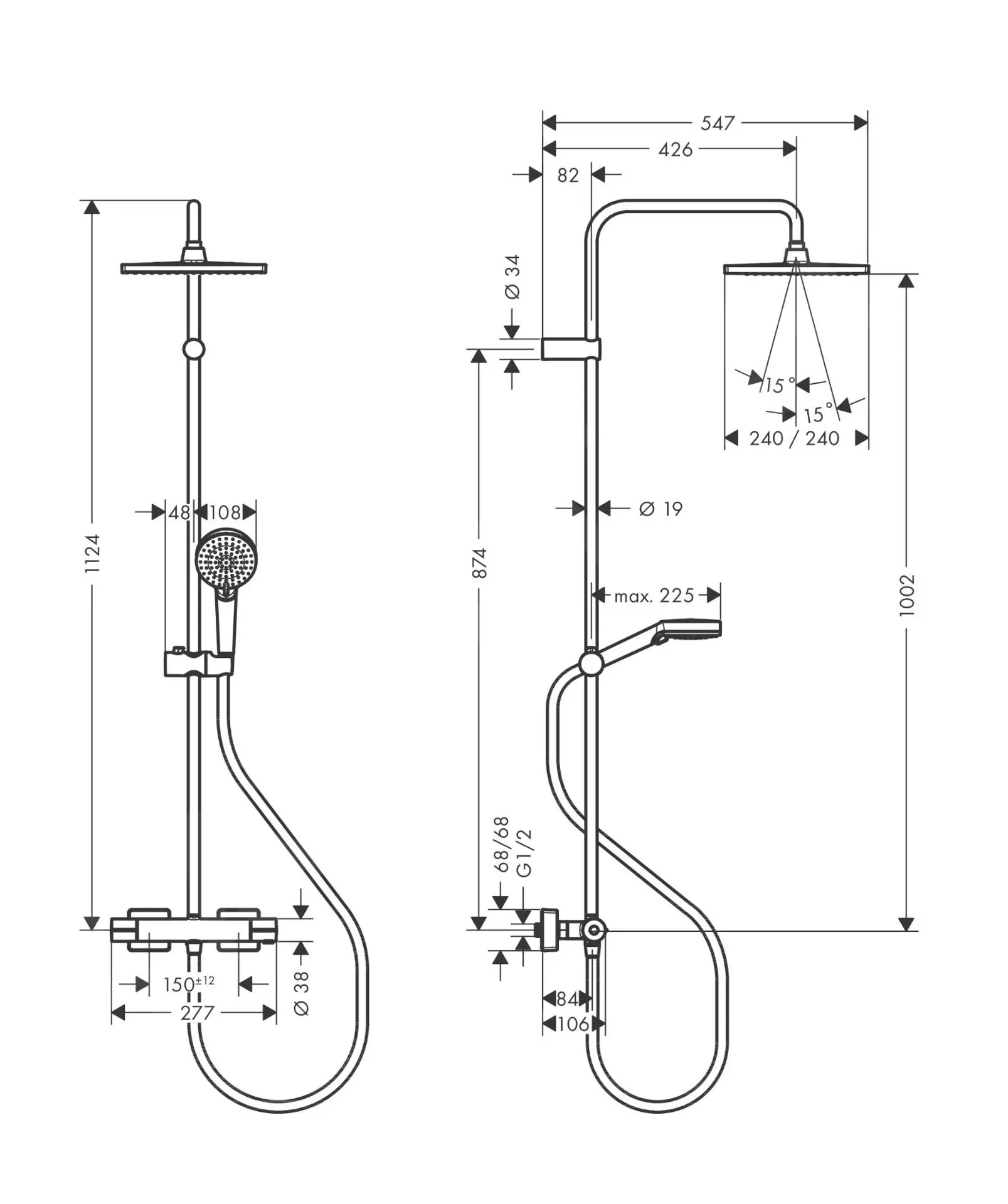 - diámetro de la alcachofa de ducha: 240 x 240 mm XXL Performance