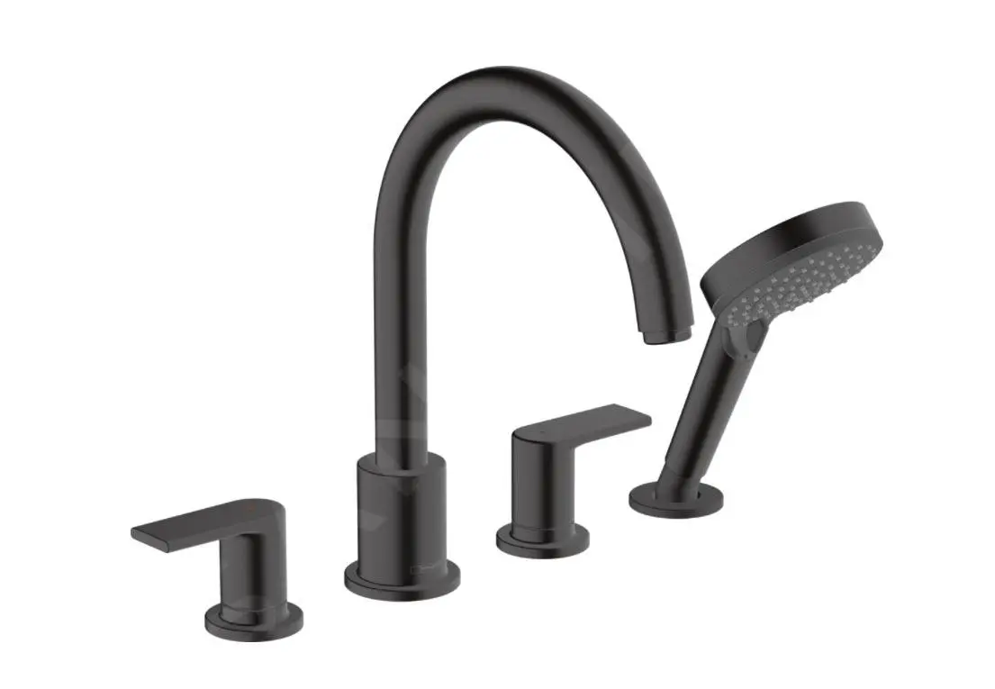 Grifo de 4 orificios para borde de bañera con ducha de mano y manguera de ducha