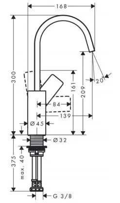 Grifo Vivenis 90 de pie con caño giratorio para lavabo