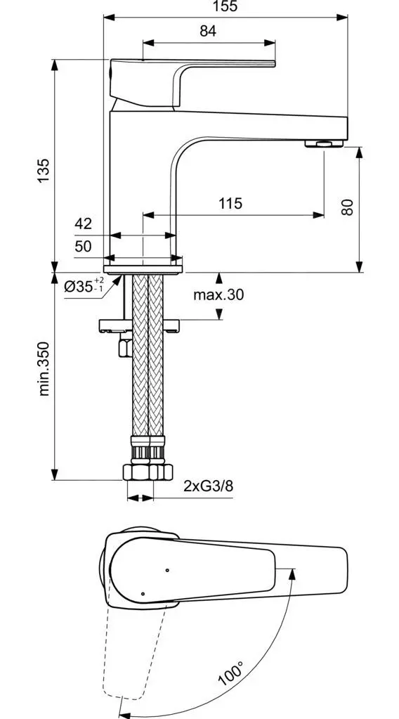 - tecnología BlueStart ahorra energía y agua, el agua fría fluye con la palanca en posición central