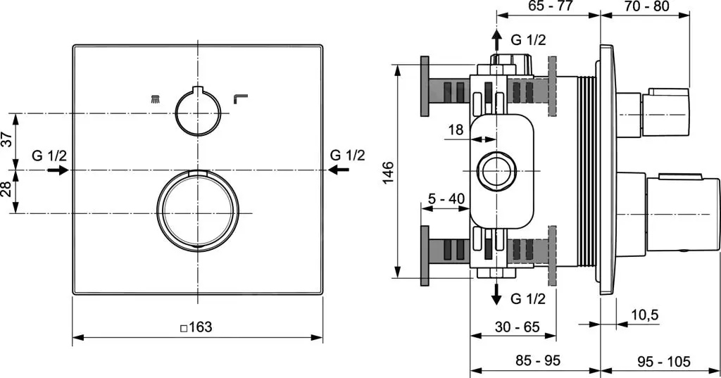 Instalación en el curpo base Easy-Box para grifo termostático, que se tiene que pedir por separado.