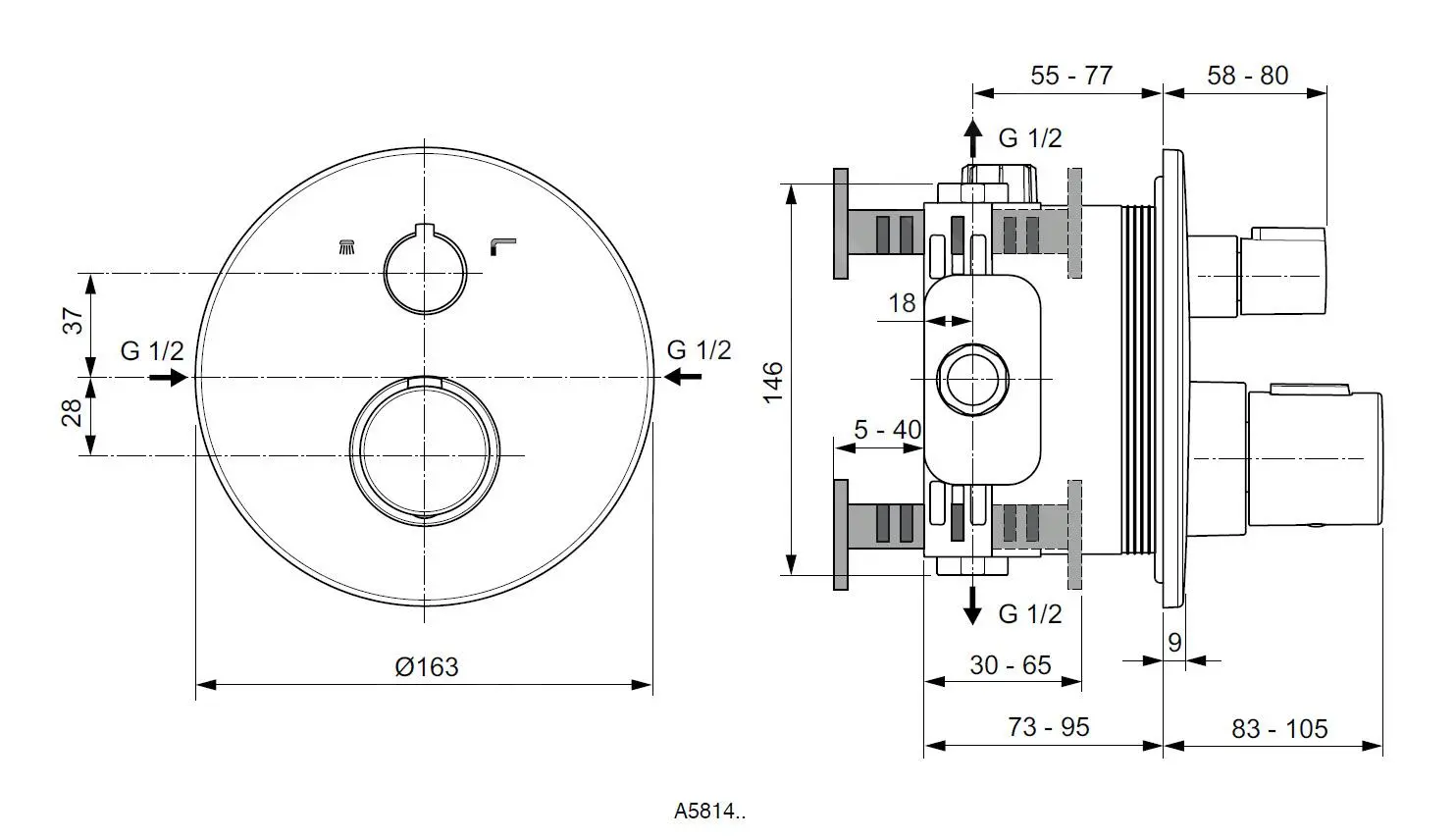 - soporte de roseta con junta integrada contra la entrada de agua en la pared