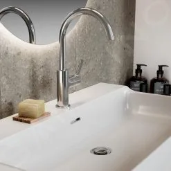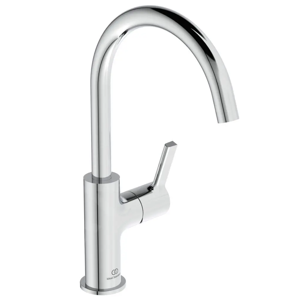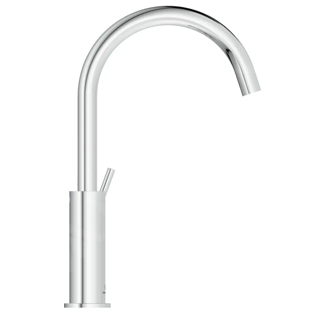 Grifo monomando de lavabo con caño alto, sin desagüe